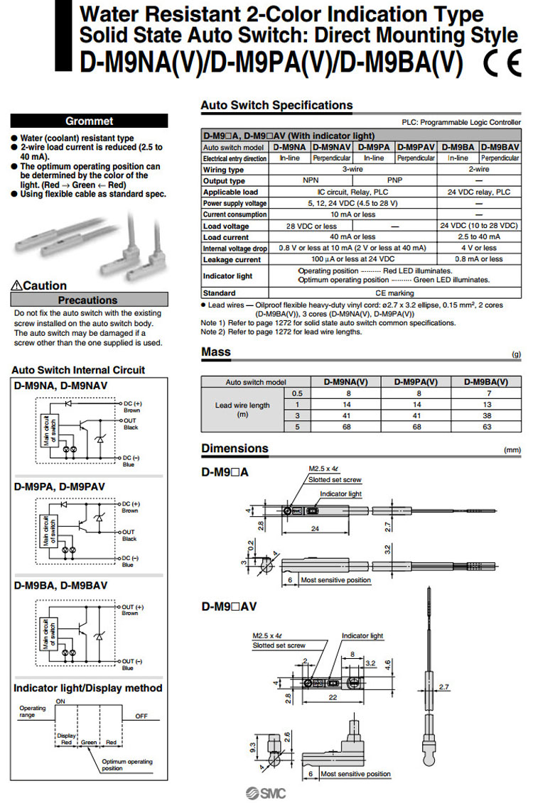 D-M9NA,D-M9NAV,D-M9PA,D-M9PAV,D-M9BA,D-M9BAV,SMC固態(tài)自動開關