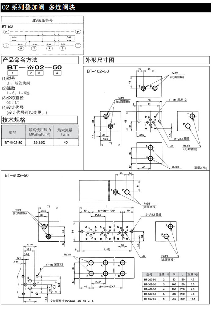 BT-102-50,BT-202-50,BT-302-50,BT-402-50,BT-502-50,BT-602-50,DAIKIN疊加閥多連閥塊
