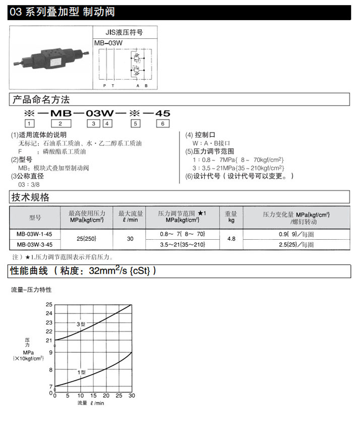 MB-03W-1-45,MB-03W-3-45,DAIKIN疊加型制動閥
