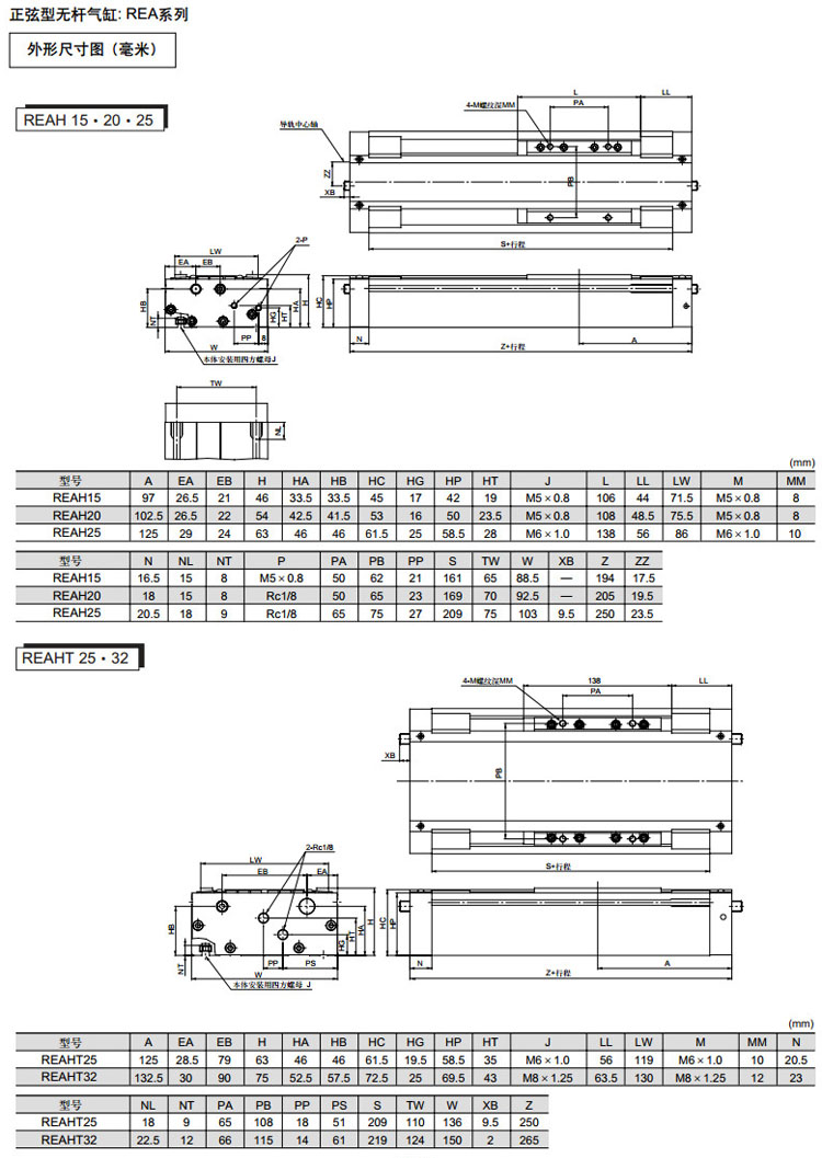 REAH10-150,REAH15-150,REAH20-200,REAH25-200,REAHT25-200,REAHT32-200,REAH10-200,SMC正弦無桿氣缸