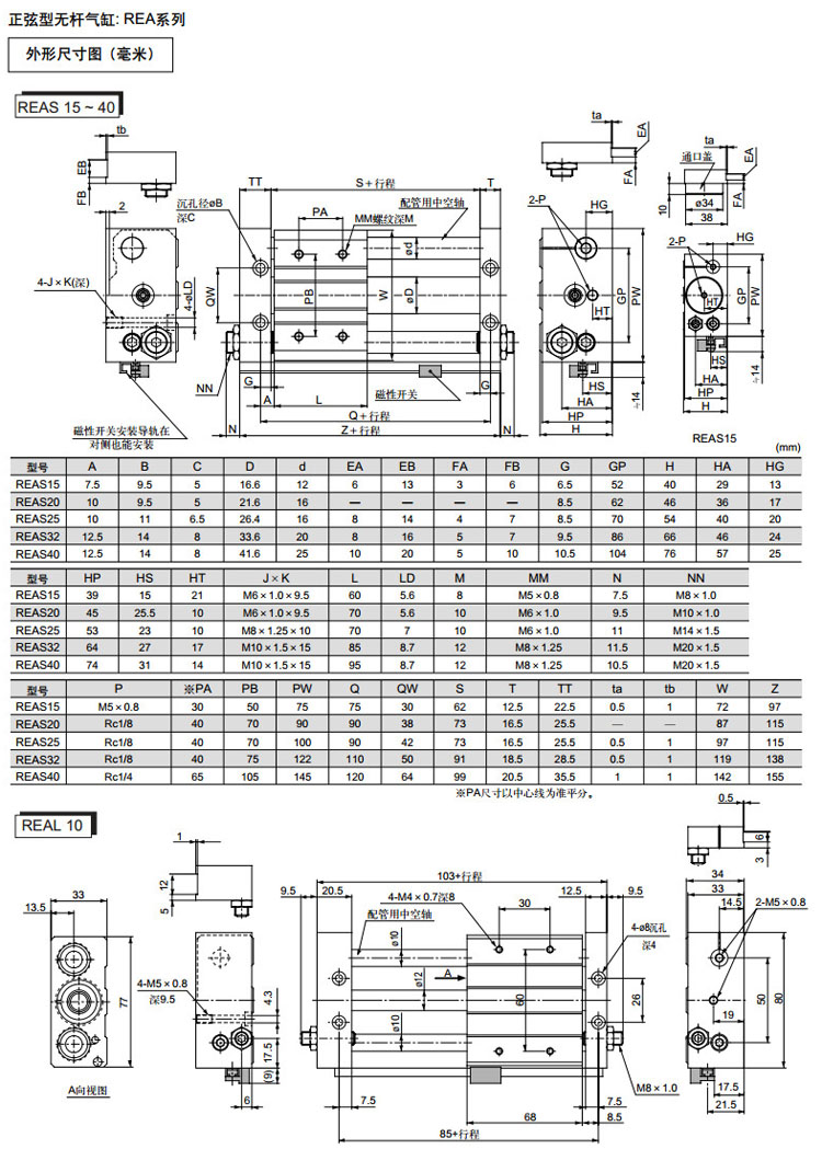 REAR10-150,REAR15-150,REAR20-200,REAR25-200,REAR32-200,REAR40-200,REAR10-200,SMC正弦無桿氣缸