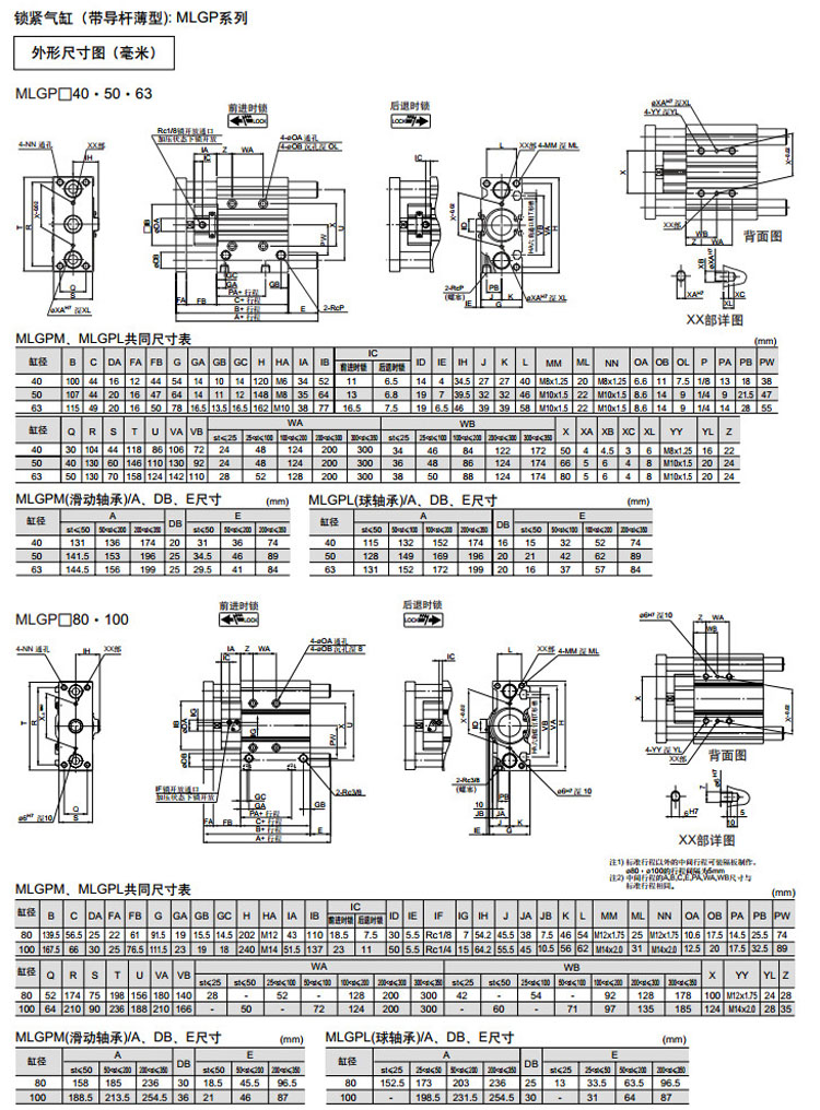 MLGPL20-20,MLGPL25-20,MLGPL32-25,MLGPL40-25,MLGPL50-25,MLGPL63-25,MLGPL80-25,MLGPL100-50,SMC鎖緊氣缸