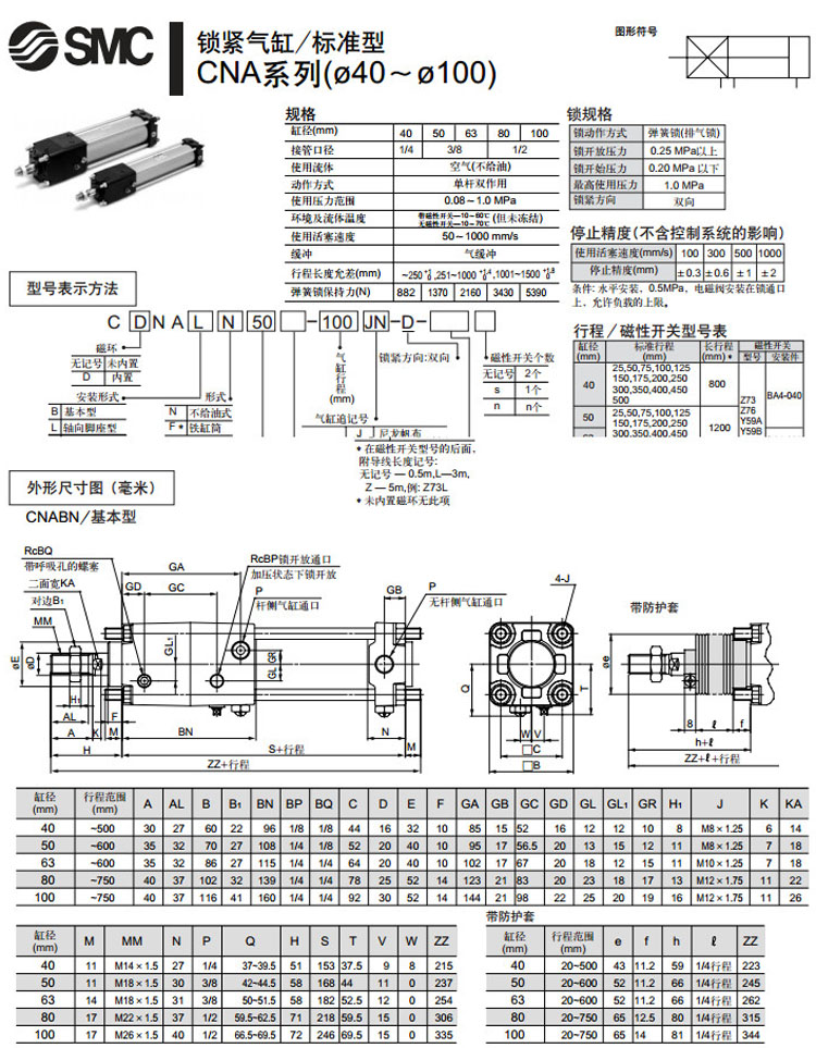CDNATN100-300,CDNATN100-350,CDNATN100-400,CDNATN100-450,CDNATN100-500,CDNATN100-600,CDNATN100-700,CDNATN63-300,SMC標(biāo)準(zhǔn)型鎖緊氣缸