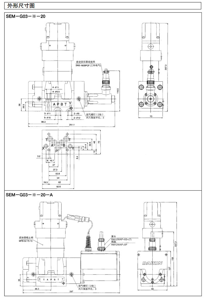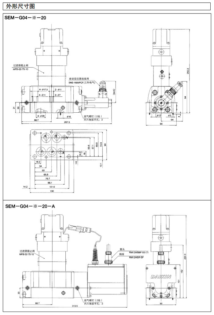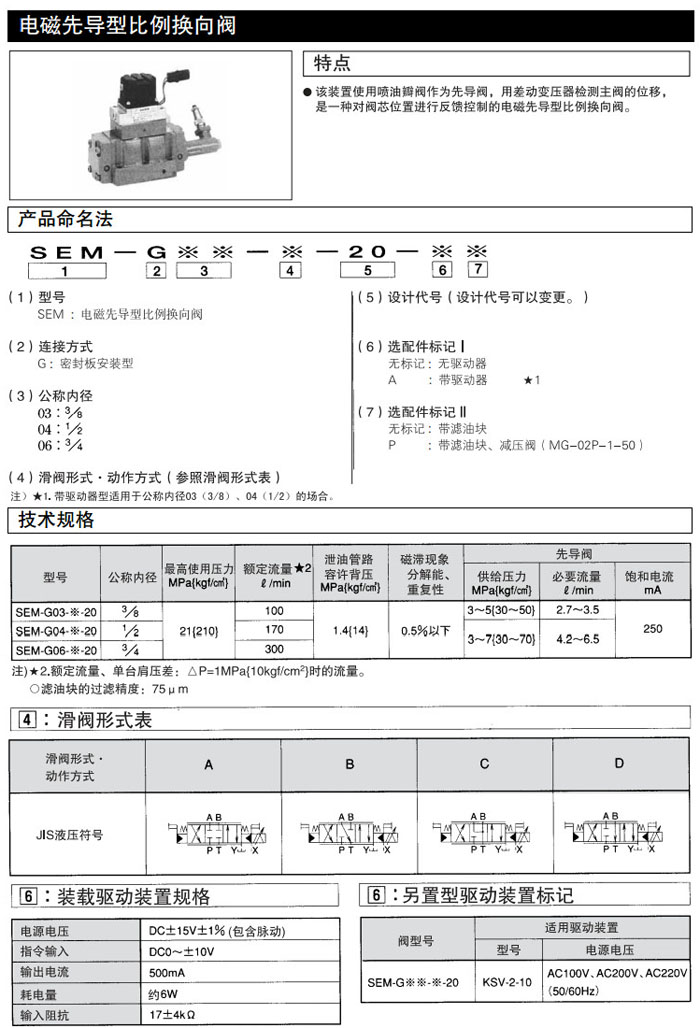 SEM-G03,SEM-G04,SEM-G06,SEM-G03-A-20,SEM-G04-A-20,SEM-G06-A-20,DAIKIN電磁先導型比例換向閥