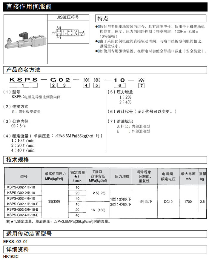KSPS-G02,KSPS-G02-11-10,KSPS-G02-11-10-E,KSPS-G02-12-10,DAIKIN直接作用伺服閥