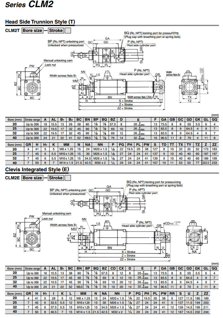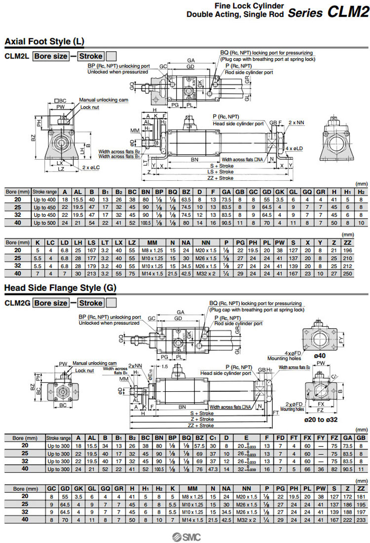 CLM2B20-25,CLM2L20-25,CLM2G20-25,CLM2C20-25,CLM2D20-25,CLM2T20-25,CLM2E20-25,SMC精密鎖緊氣缸
