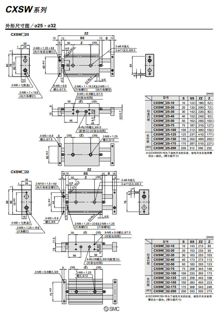 CXSWL6-10,CXSWL10-10,CXSWL15-10,CXSWL20-10,CXSWL25-10,CXSWL32-10,SMC雙聯(lián)氣缸