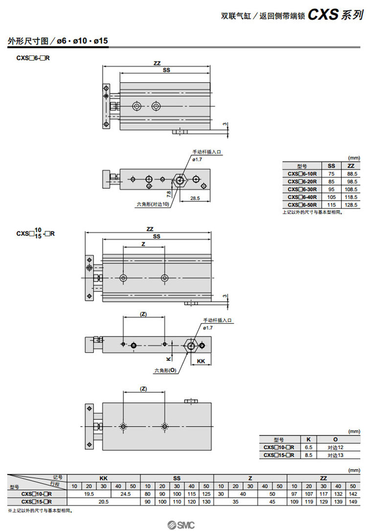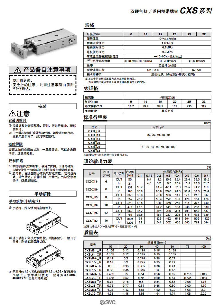 CXSL6-10R,CXSL10-10R,CXSL15-10R,CXSL20-10R,CXSL25-10R,CXSL32-10R,CXSL6-20R,SMC雙聯(lián)氣缸