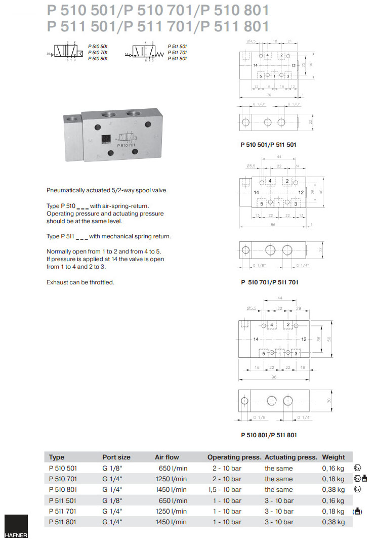 P510501,P510701,P510801,P511501,P511701,P511801,Hafner滑閥