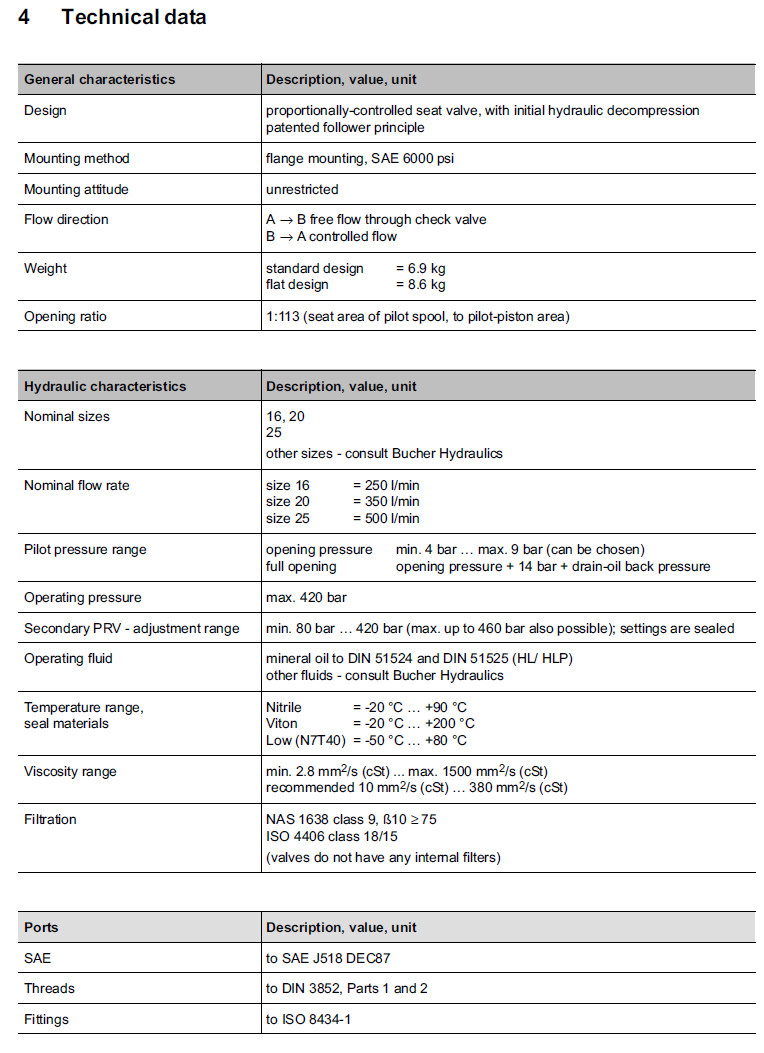 ESV-16-B-SNO,ESV-16-B-SND,ESV-16-B-STO,ESV-16-B-STD,ESV-16-B-SVO,Bucher比例控制閥 |