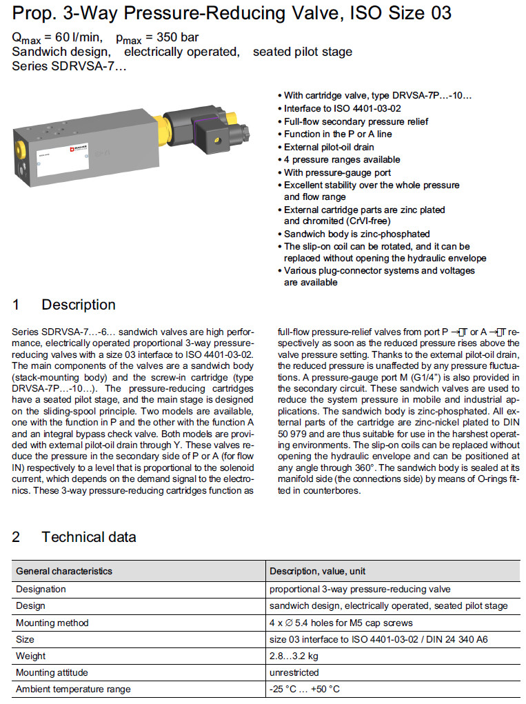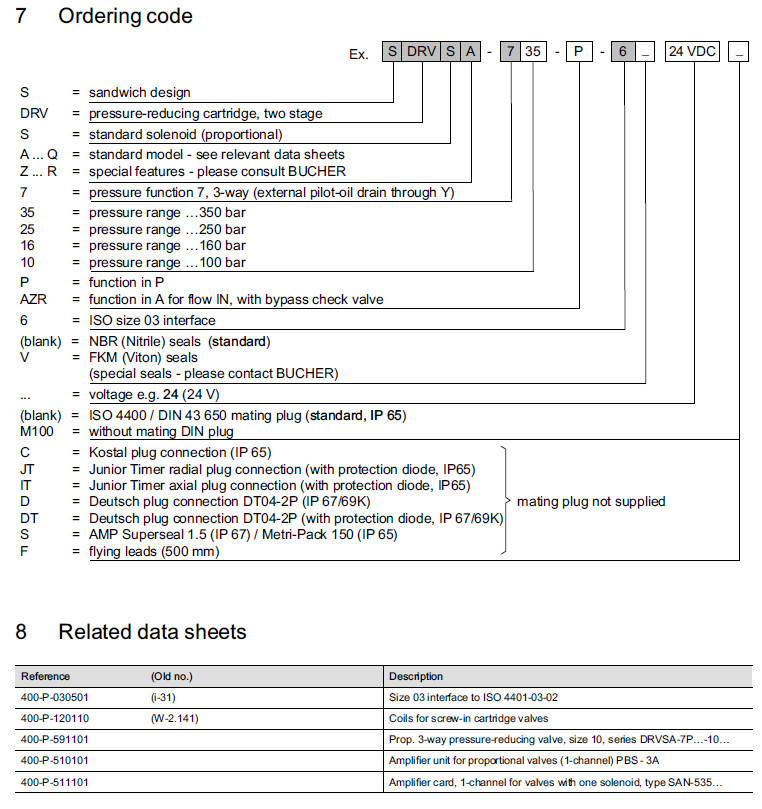 SDRPSA-735-P-6,SDRPSA-725-P-6,SDRPSA-716-P-6,SDRPSA-710-P-6,Bucher比例減壓閥