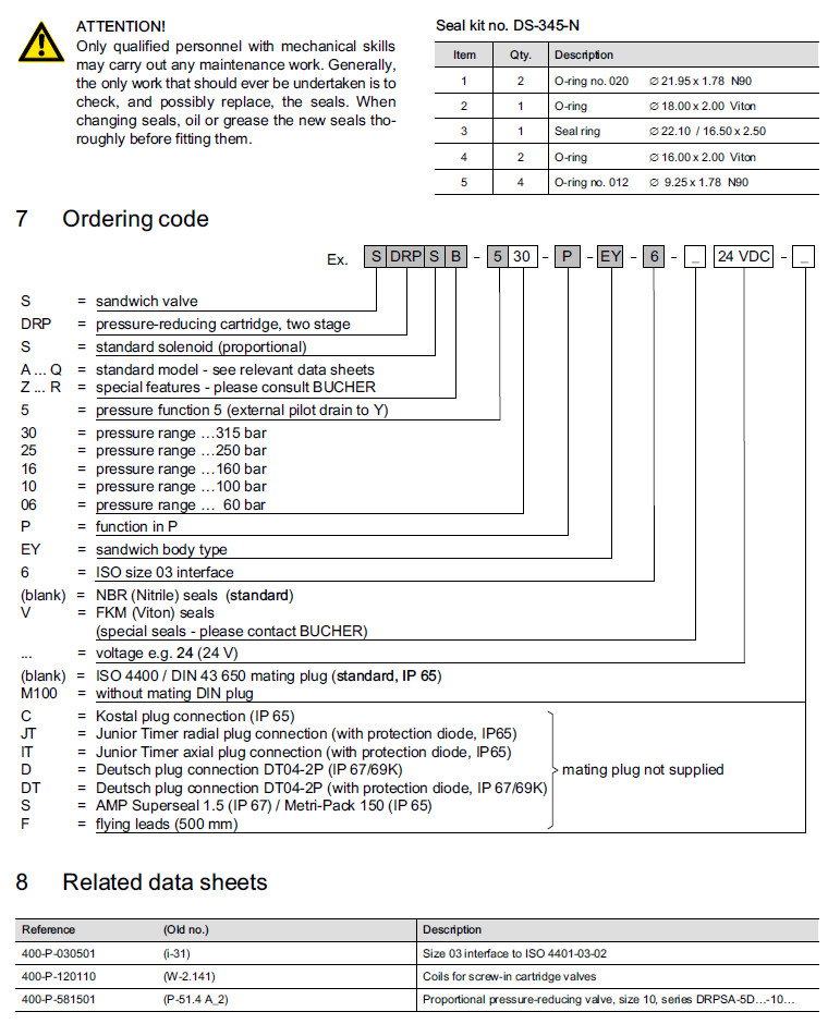 SDRPSB-530,SDRPSB-525,SDRPSB-516,SDRPSB-510,SDRPSB-506,Bucher比例減壓閥