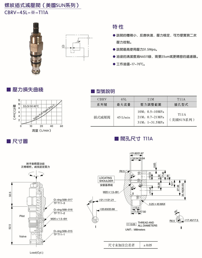 CBRV-45L-10M-T11A,CBRV-45L-21M-T11A,CBRV-45L-31M-T11A,螺紋插式減壓閥