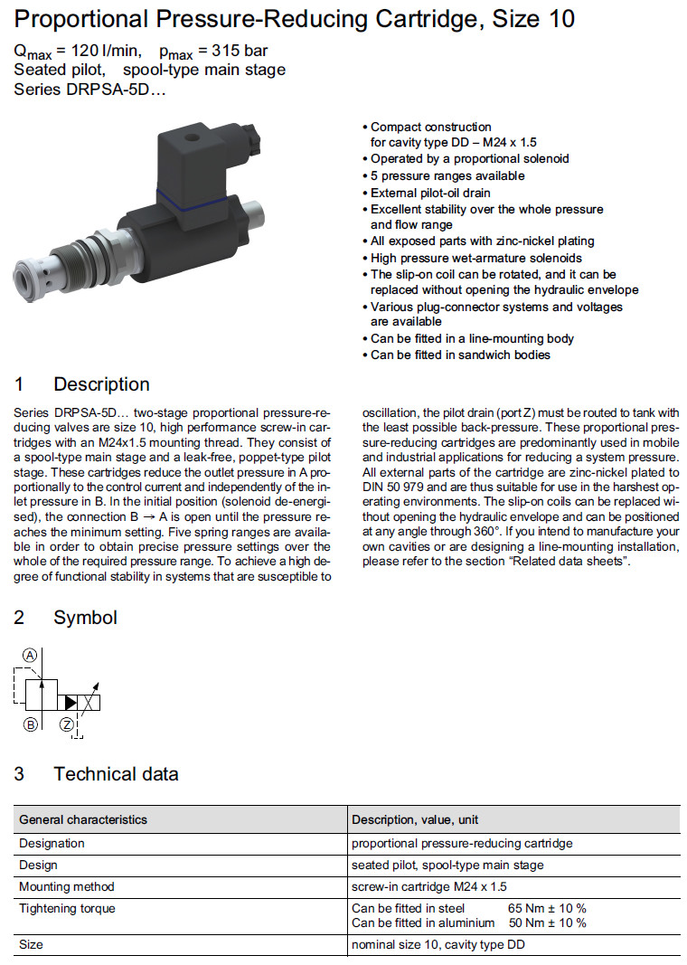 DRPSA-5D-100,DRPSA-5D-060,DRPSA-5D-315,DRPSA-5D-250,DRPSA-5D-160,Bucher減壓閥