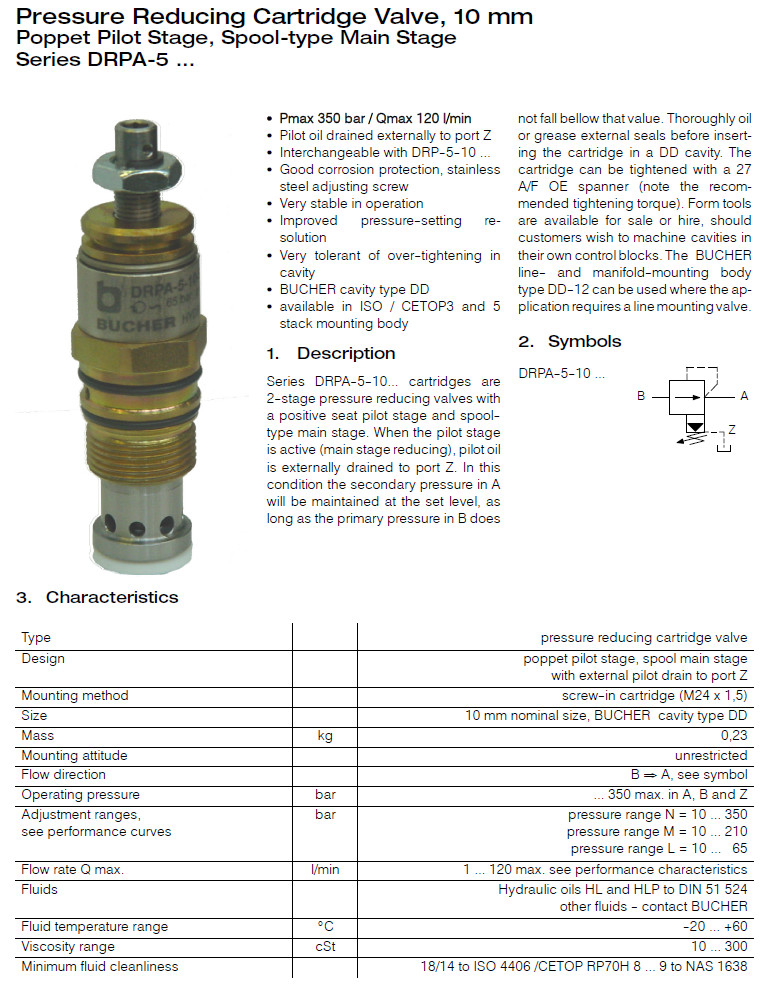 DRPA-5-10-SLM-3,DRPA-5-10-SL-3,DRPA-5-10-HL-3,DRPA-5-10-SM-3,Bucher減壓閥 |