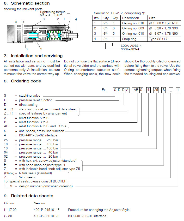 SDDA-ABS-4-25-S,SDDA-ABS-4-16-H,SDDA-BS-4-10-H,SDDA-AS-4-4-Z,Bucher抗沖擊卸壓閥