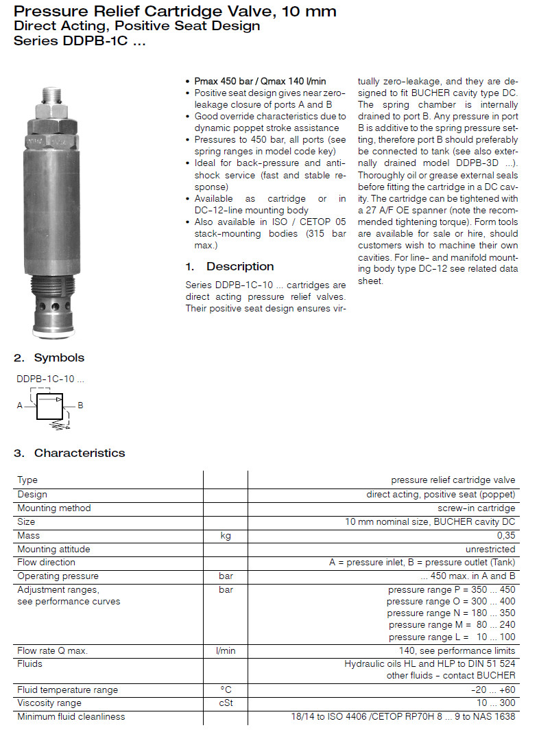 DDPB-1C-10-SP-1,DDPB-1C-10-SOV-1,DDPB-1C-10-SL-1,DDPB-1C-10-SM-1,Bucher泄壓閥