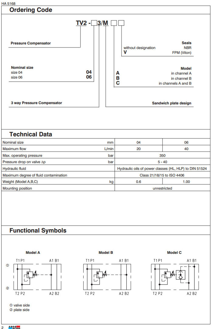 TV2-043/MA,TV2-043/MB,TV2-043/MC,TV2-063/MA,TV2-063/MB,TV2-063/MC,ARGO 3路壓力補償器