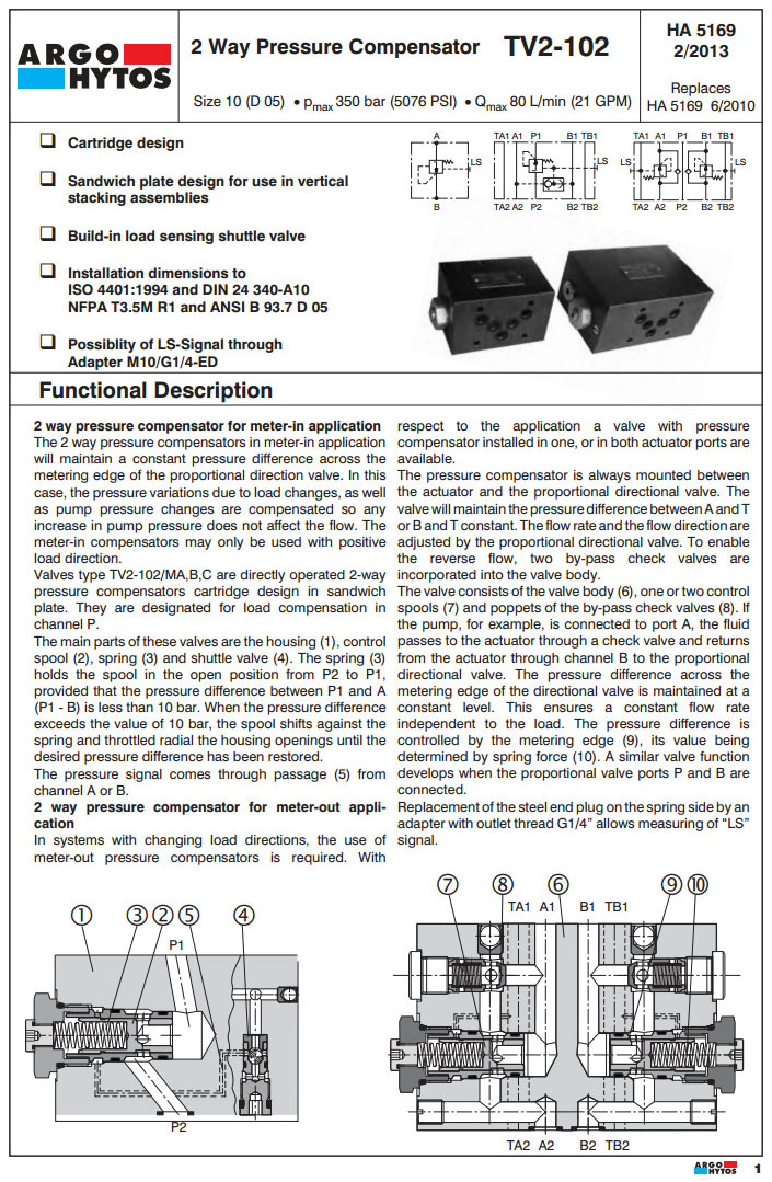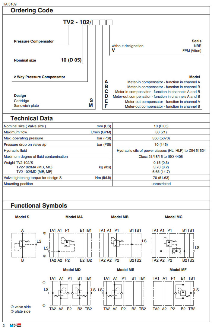 TV2-102/S,TV2-102/MA,TV2-102/MB,TV2-102/MC,TV2-102/MD,TV2-102/ME,TV2-102/MF,ARGO 2路壓力補償器