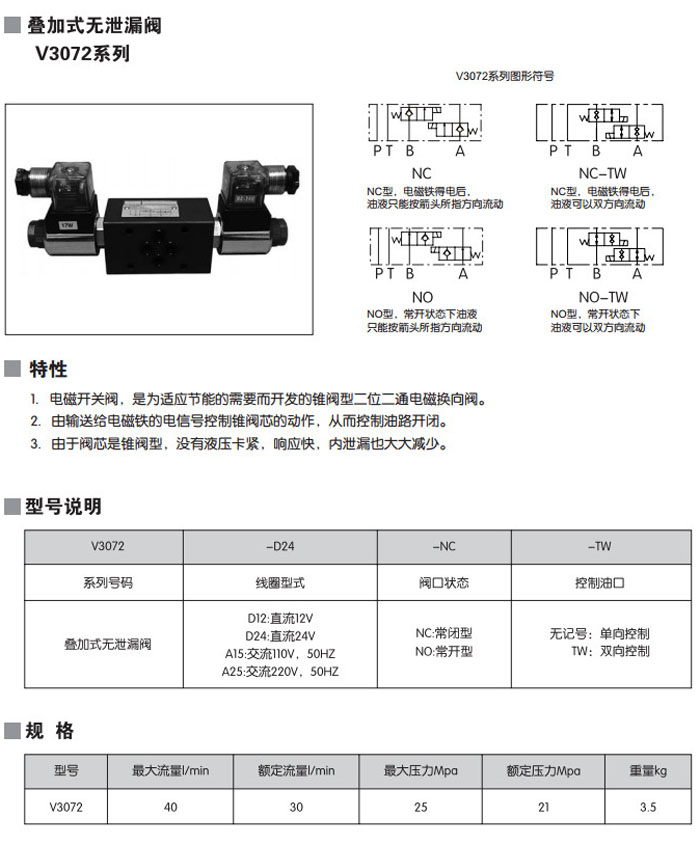 V3072-D24,V3072-D12,V3072-A15,V3072-A25,V3072-D24-NC-TW,V3072-A15-NO,疊加式無泄漏閥