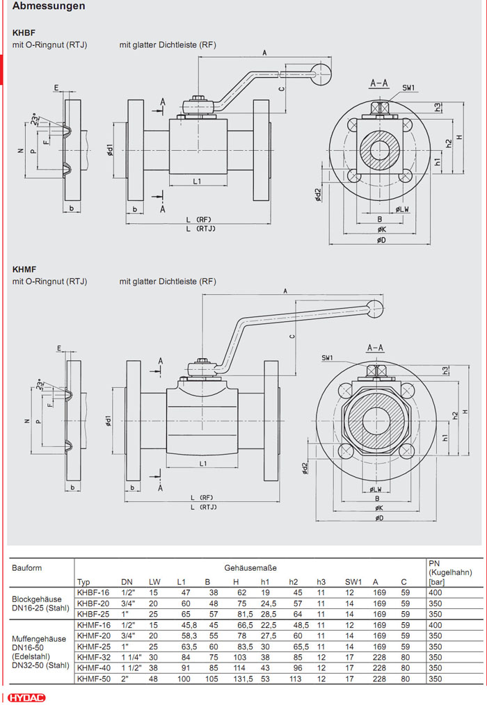 KHBF-16,KHBF-20,KHBF-25,KHMF-16,KHMF-20,KHMF-25,KHMF-32,KHMF-40,KHMF-50,HYDAC 2路高壓球閥