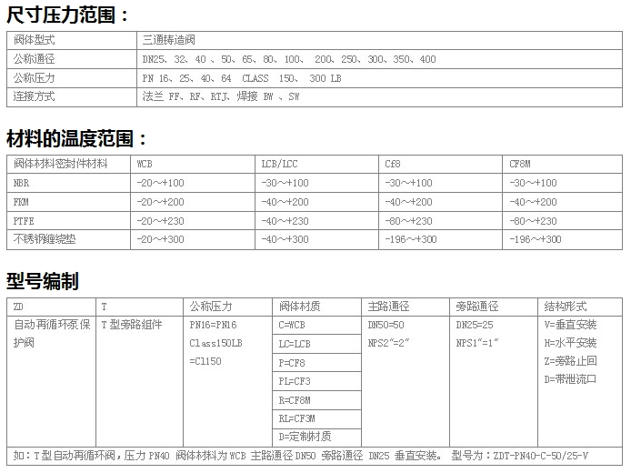 止回:自動再循環(huán)閥還具有止回閥的作用,防止液體回流到泵體中。ZDT旁路止回為可選功能。