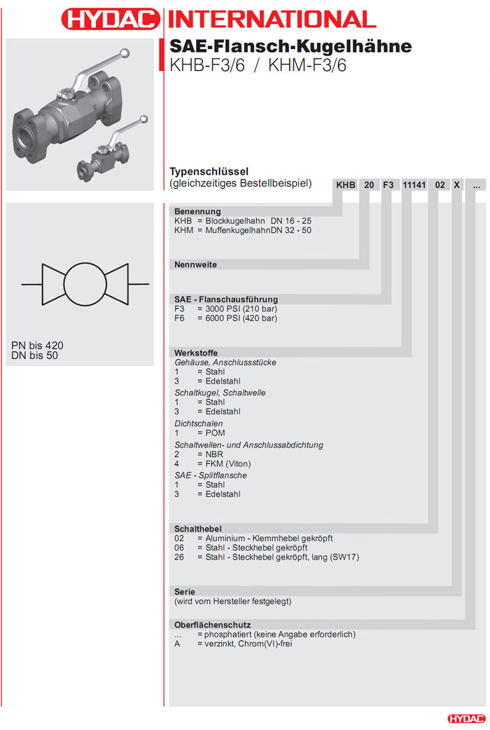 KHB-16-F3,KHB-16/20-F3,KHB-20-F3,KHB-25-F3,KHM-32-F3,KHM-40-F3,KHM-50-F3,HYDAC 2路高壓球閥 |
