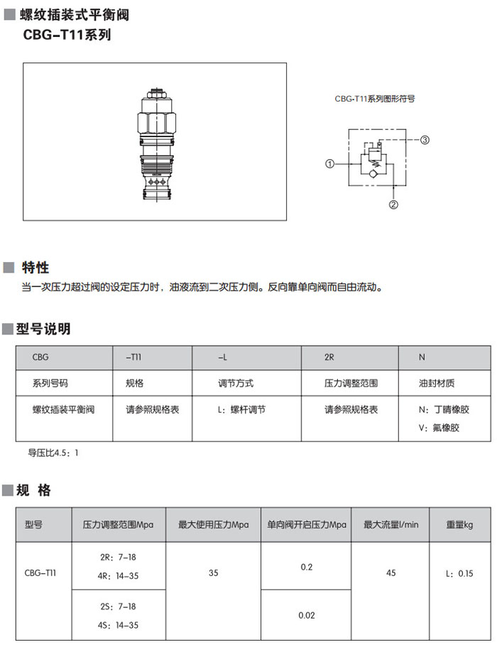 CBG-T11-L2RN,CBG-T11-L4RN,CBG-T11-L2SN,CBG-T11-L4SN,CBG-T11-L2RV,CBG-T11-L4RV,螺紋插裝式平衡閥