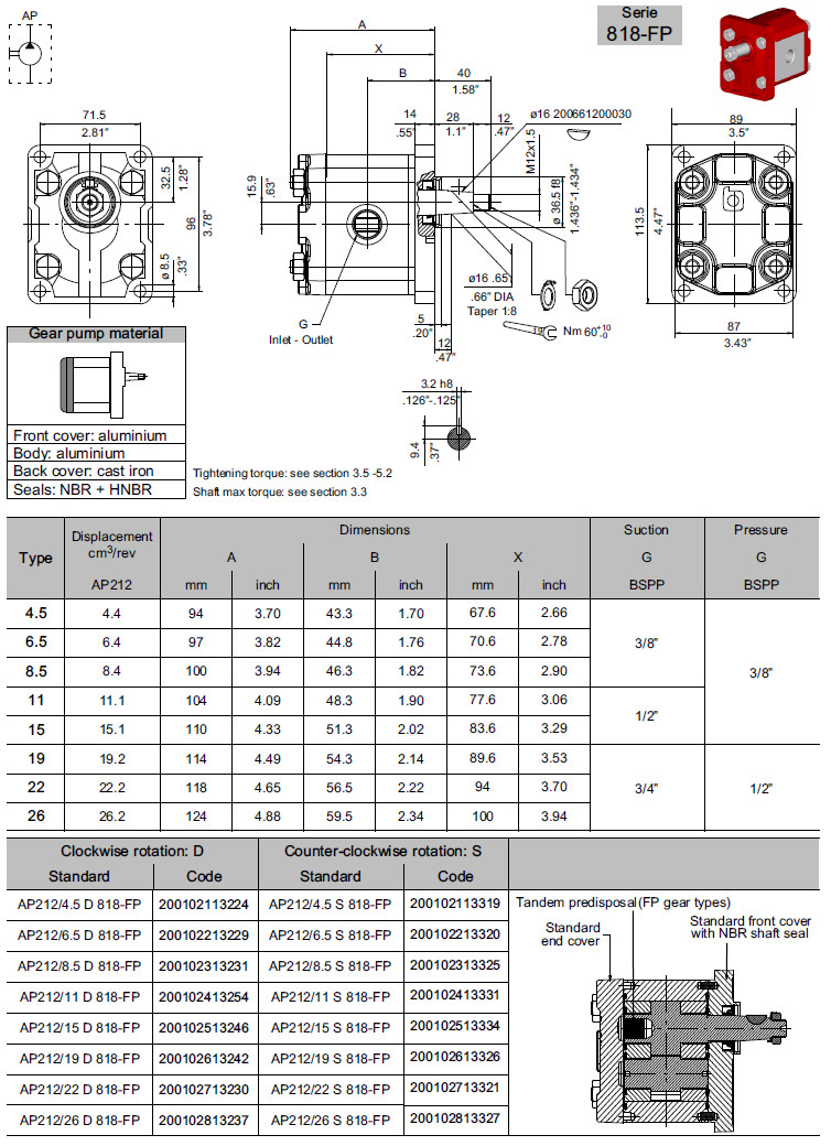 AP212/6.5-D-218-FP,AP212/11,AP212/15,AP212/19,AP212/22,Bucher外嚙合齒輪泵 |