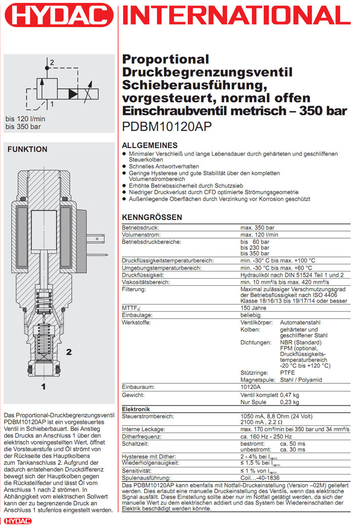 PDBM10120AP-01-C-N-60-12PG-2.2,PDBM10120AP-01-C-N-230-12PG-2.2,HYDAC比例溢流閥