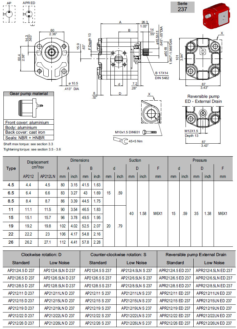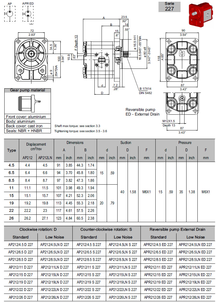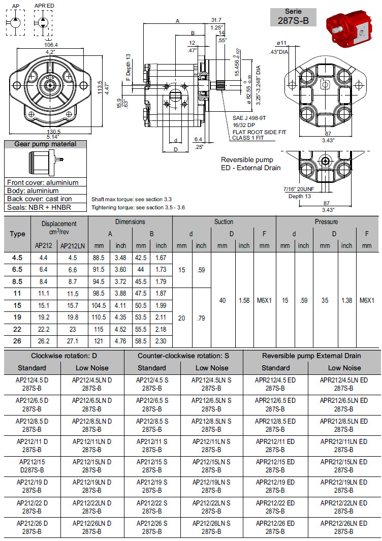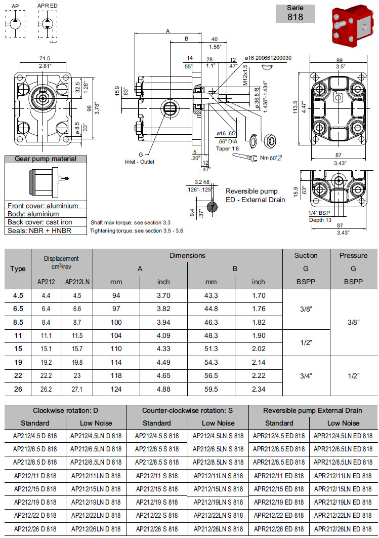 AP212/4.5,AP212/6.5,AP212/8.5,AP212/11,AP212/15,AP212/22,Bucher外嚙合齒輪泵 |