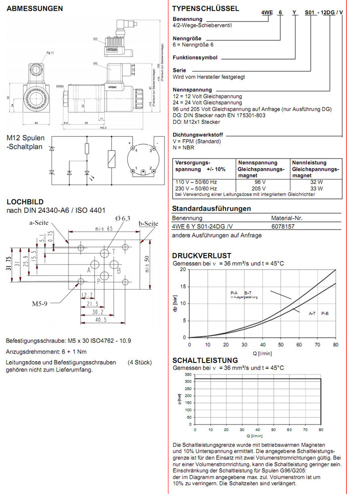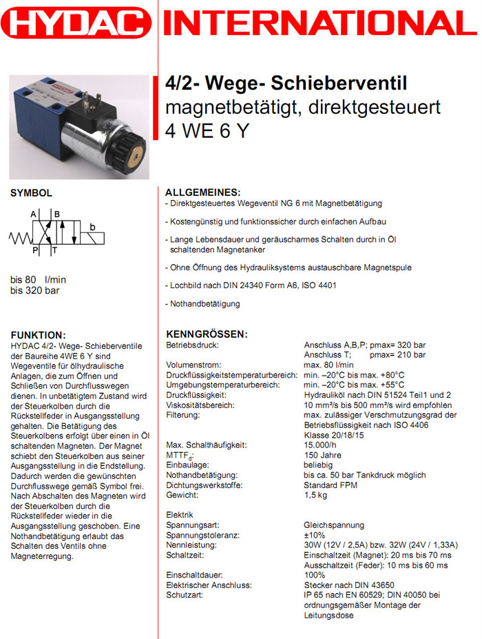 4WE6YS01-12DG/V,4WE6YS01-24DG/V,HYDAC電磁4/2方向滑閥