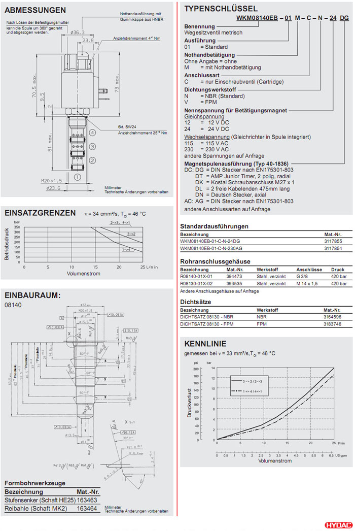 WKM08140EB-01-C-N-24DG,WKM08140EB-01-C-N-230AG,HYDAC電磁4/2方向滑閥