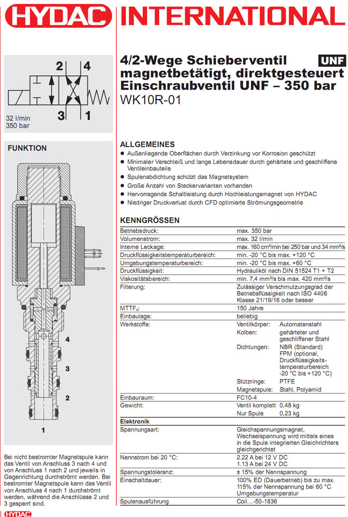 WK10R-01-C-N-24DG,WK10R-01-C-N-230AG,HYDAC電磁4/2方向滑閥
