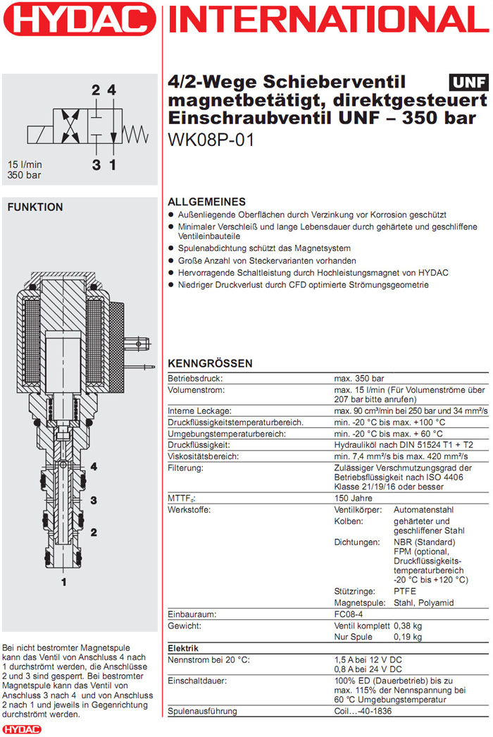 WK08P-01-C-N-24DG,WK08P-01-C-N-230AG,HYDAC電磁4/2方向滑閥