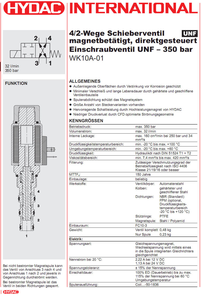 WK10A-01-C-N-24DG,WK10A-01-C-N-230AG,HYDAC電磁4/2方向滑閥